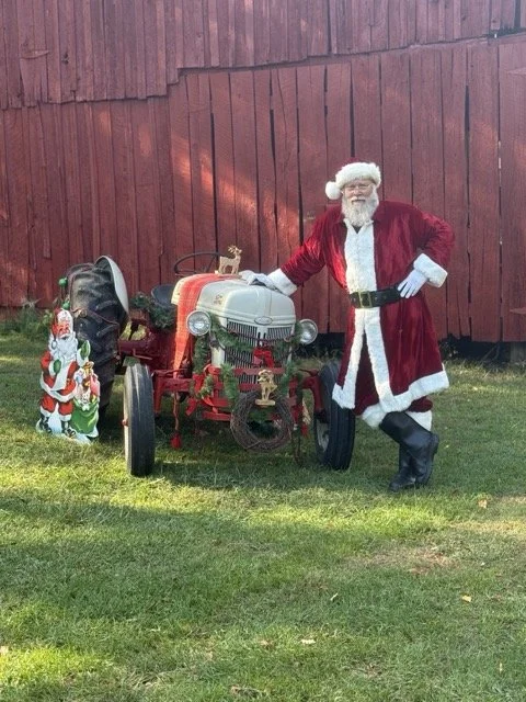 Our vintage red Ford 8N tractor, decked out in white accents and framed by our century-old red barn, creates a rustic, nostalgic backdrop your clients will love. Santa himself will be on-site and ready for photos, making this setup ideal for classic family portraits and Santa minis with real character.